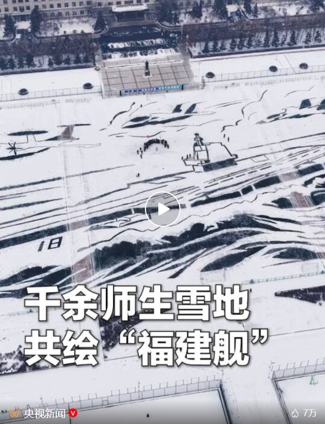 威武的“福建舰”破雪而行